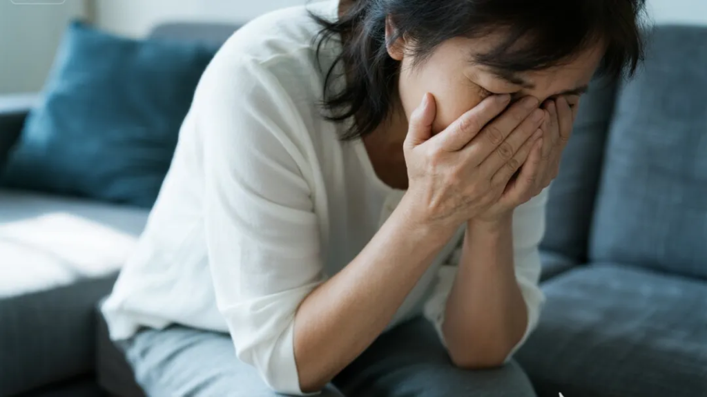 她想坐在沙发上,却无法轻松弯曲膝盖,只能伸直僵硬的双腿,用手撑着沙发扶手,小心翼翼地、一点点地将身体的重心往下“放”,最后“咚”地一声跌坐在沙发上,疼得龇牙咧嘴。