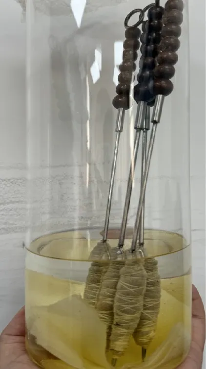 “后背是吧?来,趴好了。”郎中指挥患者趴好,从旁边的玻璃罐中,取出一根包裹着纱布,沾满液体的“小棍”。刘念来凑近一看,这下看清了:这是一根磨钝了的针,长短、粗细类似于一根缝衣针。